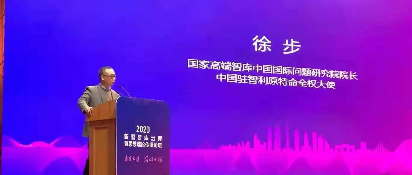 12月19日,徐步院长应邀出席由光明日报社、南京大学主办,光明日报智库研究与发布中心、南京大学中国智库研究与评价中心承办的“2020新型智库治理暨思想理论传播论坛”并作主旨报告。