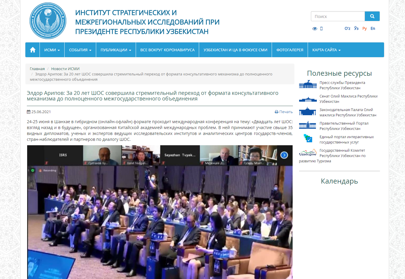 在全体会议环节,与会专家学者们围绕上合组织20年成就与经验、中国与上合组织、上合组织20年问题与解决、当前国际格局下上合组织前景与展望等议题进行了深入研讨和交流,引起媒体高度关注。人民网、新华社、光明日报、CGTN、环球时报、文汇报、乌兹别克斯坦日报等多家中外媒体进行了广泛报道。