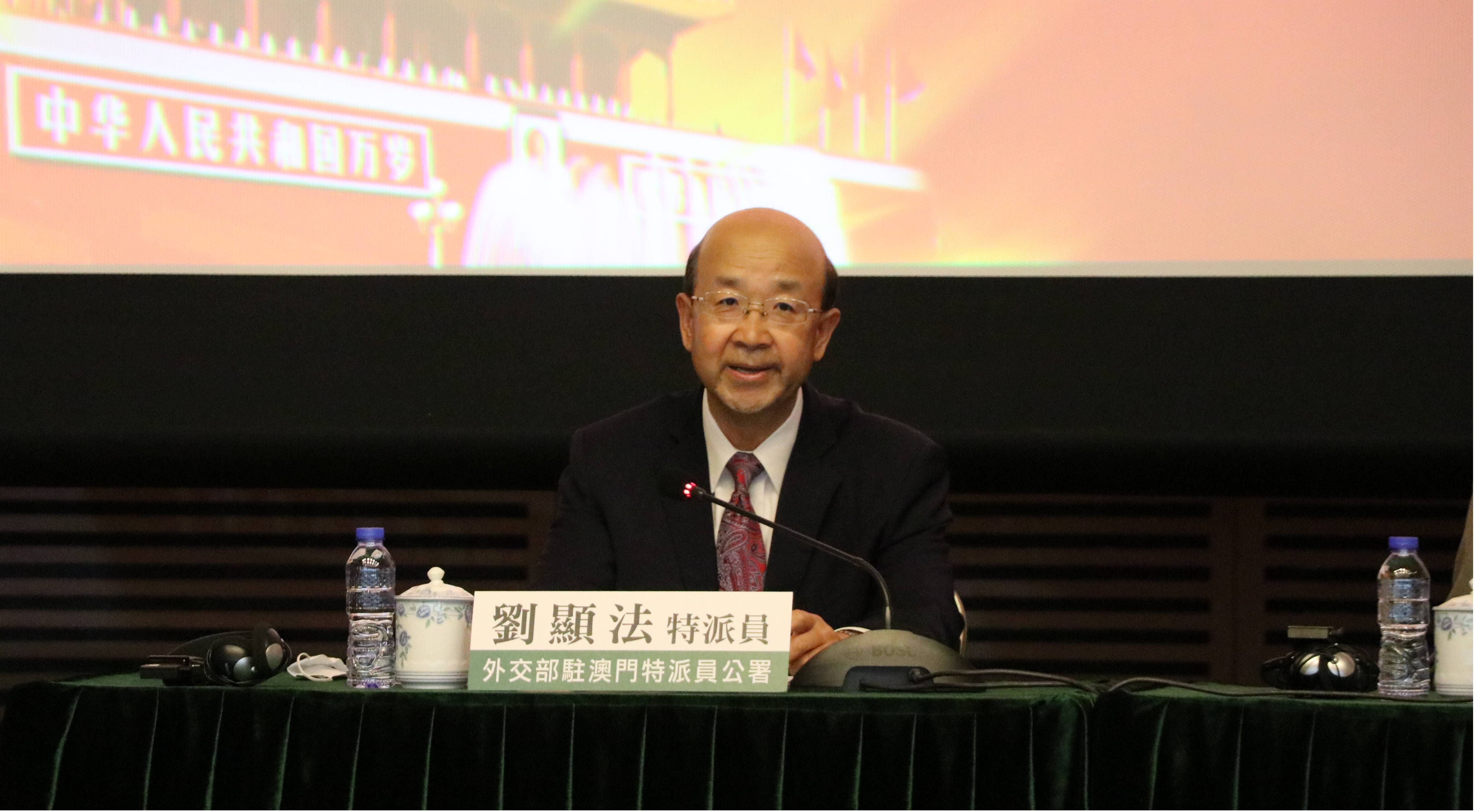 刘显法特派员表示,在习近平外交思想指引下,中国外交取得了历史性成就,开创了崭新局面。公署将与澳门各界携手努力,坚定落实“爱国者治澳”原则,捍卫国家主权安全发展利益,践行“外交为民”理念,为特区繁荣稳定和长治久安保驾护航。
