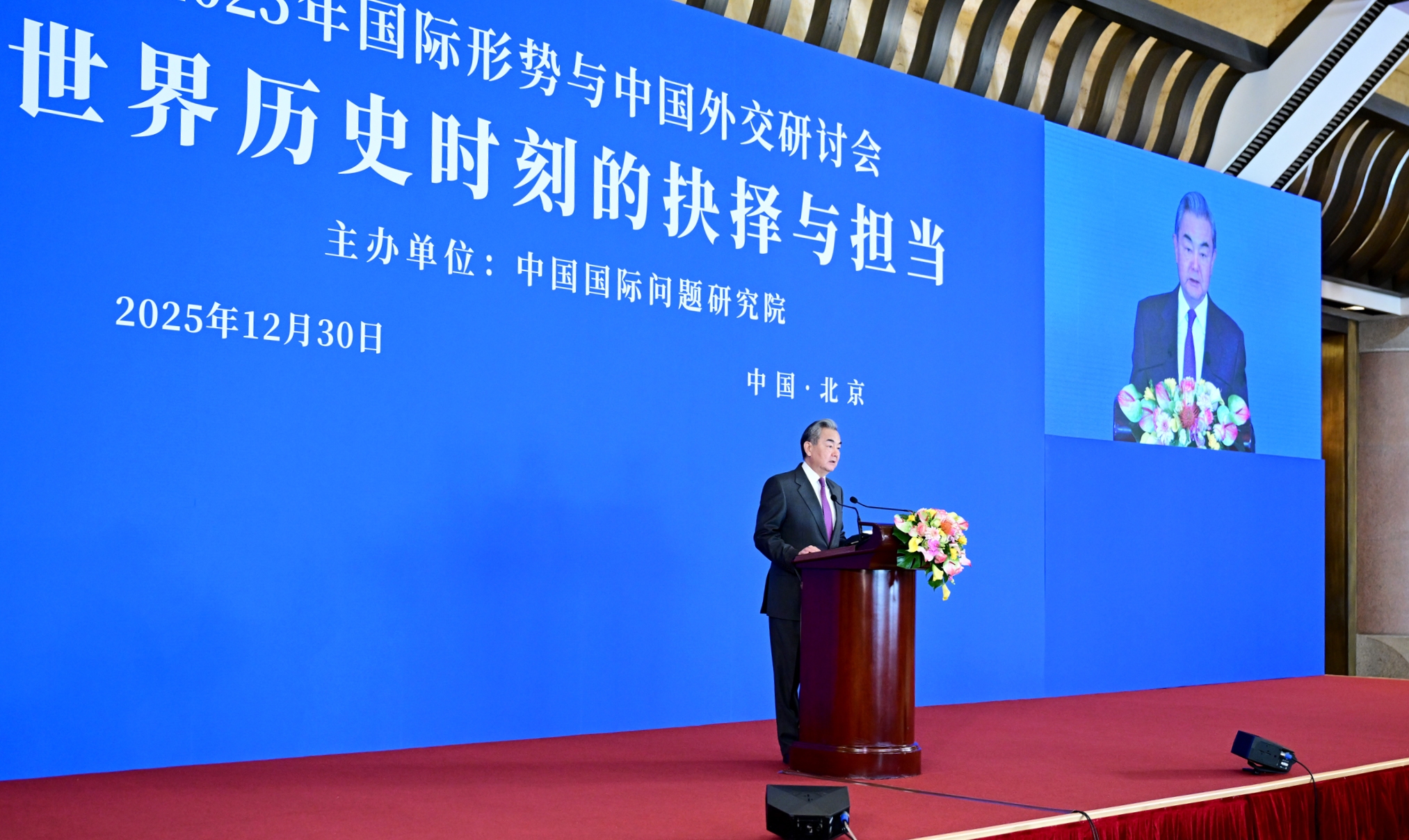 A look back at our journey of major-country diplomacy with Chinese characteristics in 2025 strikes us more keenly than ever that the relationship between China and the world is developing in a more positive direction, and that China’s international influence, its capacity to lead new endeavors and its moral appeal have significantly enhanced. Today, with composure and confidence, China’s diplomacy is cleaving through the waves and pressing ahead. This is fundamentally attributable to the stewardship of President Xi Jinping, the sound guidance of Xi Jinping Thought on Diplomacy, and the centralized, unified leadership of the CPC Central Committee. It is also attributable to the enormous support of the people and the fact that China’s diplomatic vision always holds international moral high ground.