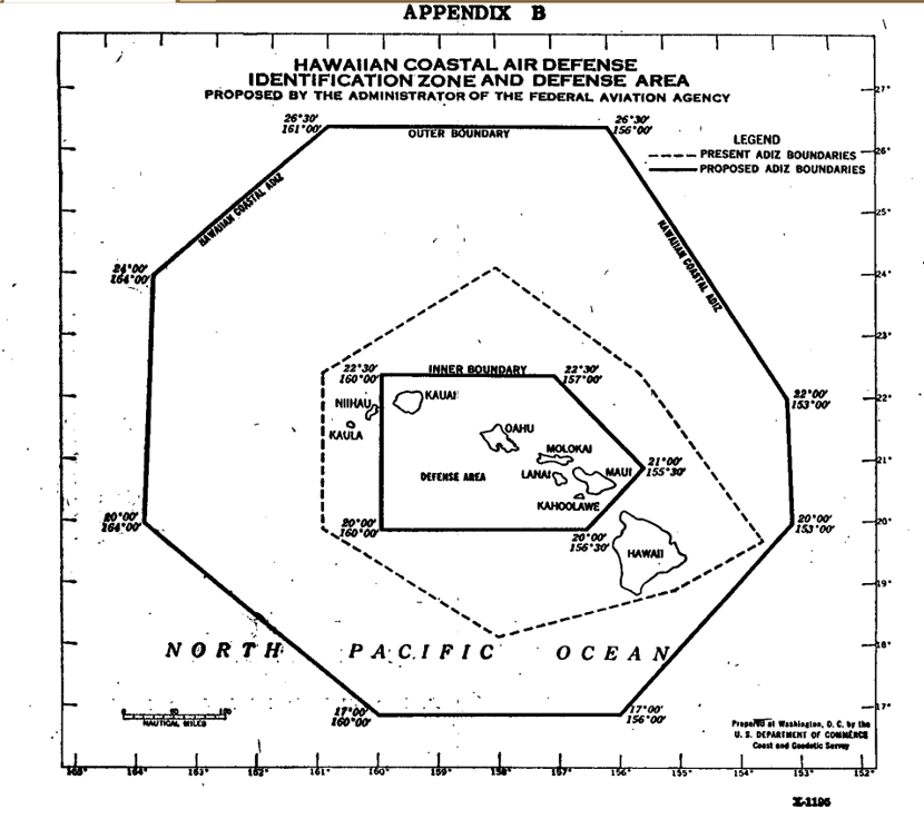 图1 1961年6月17日美国《联邦公报》中关于夏威夷ADIZ调整变化的附图