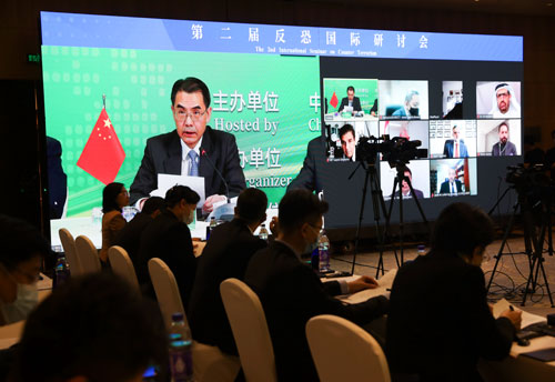 2021年12月22日,以“反恐新形势、新威胁、新挑战和共同应对新举措”为主题的第二届反恐国际研讨会通过线上线下相结合方式举行。外交部部长助理吴江浩出席开幕式并发表主旨演讲。俄罗斯副外长瑟罗莫洛托夫、阿联酋国际反暴力极端主义示范中心主席阿里、巴基斯坦外交部辅秘穆尼尔在开幕式上视频致辞。