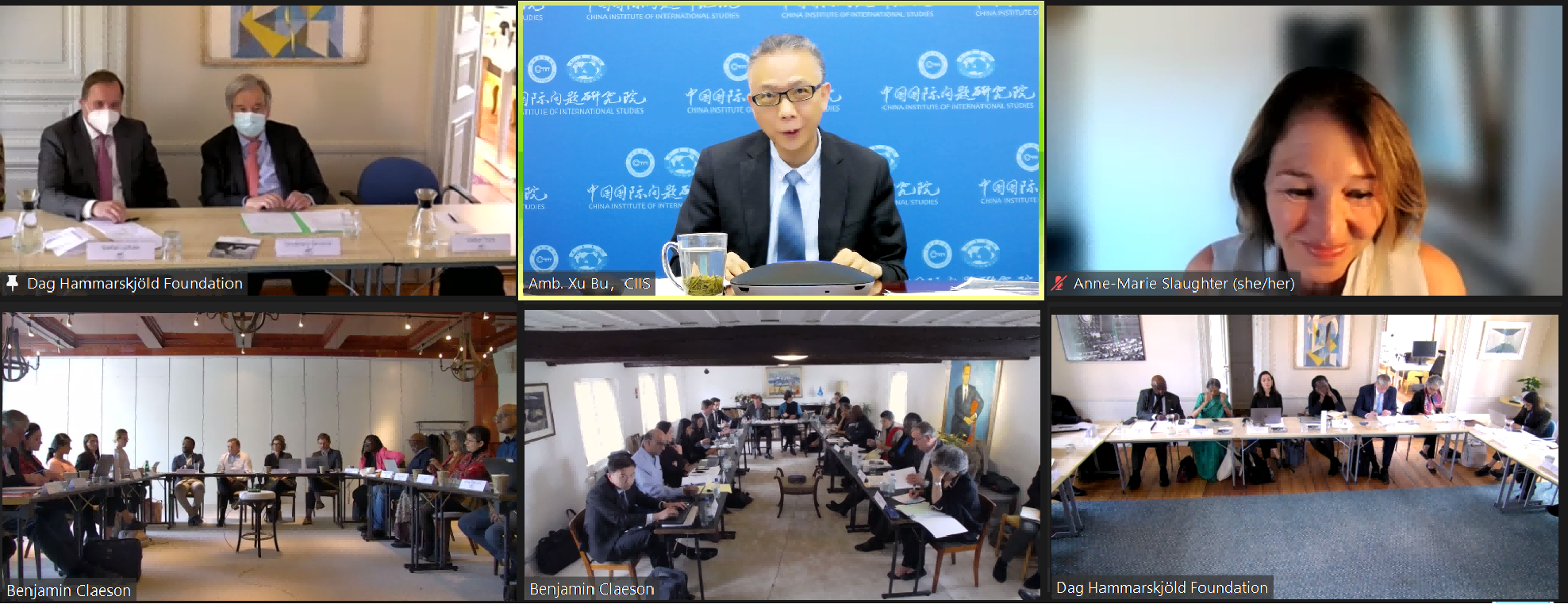 5月30日至6月1日,联合国秘书长“有效的多边主义高级别咨询委员会”第三次会议在瑞典举行。古特雷斯秘书长到场出席会议并与咨询委员会成员交流互动。瑞典前首相勒文作为委员会联合主席主持会议,委员会12名成员全部与会,就全球金融架构、气候治理、和平与安全等议题进行深入讨论。徐步院长、利比里亚前总统瑟利夫和美方成员安妮-玛丽·斯劳特线上出席会议。