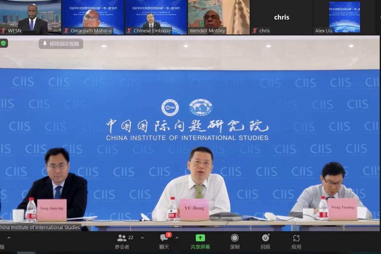 6月21日,习近平外交思想研究中心同中国驻特立尼达和多巴哥大使馆联合举办“习近平外交思想和中特‘一带一路’合作”研讨会。本次会议以线上线下相结合方式举行。习近平外交思想研究中心专职副秘书长、中国国际问题研究院副院长于江主持会议,中国驻特立尼达和多巴哥大使方遒致辞,特多前财政部长、制造商协会CEO、前媒体协会主席、西印度大学学者等各界知名人士参加研讨。两国专家就当前国际形势和习近平外交思想、中拉关系、中特“一带一路”合作等议题开展深入交流。