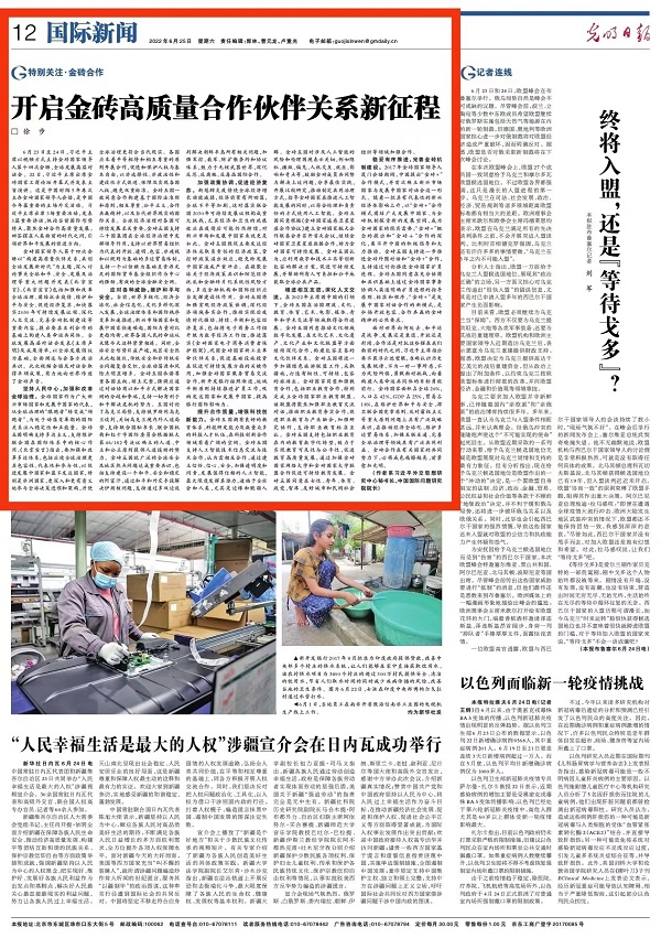 6月25日,《光明日报》刊登徐步院长文章《开启金砖高质量合作伙伴关系新征程》,现将全文转载如下。