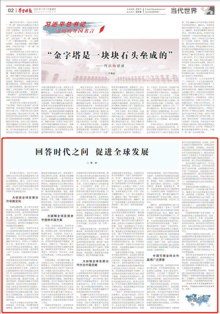 7月1日,中国国际问题研究院徐步院长在《学习时报》发表长篇文章《回答时代之问 促进全球发展》。全文转载如下。