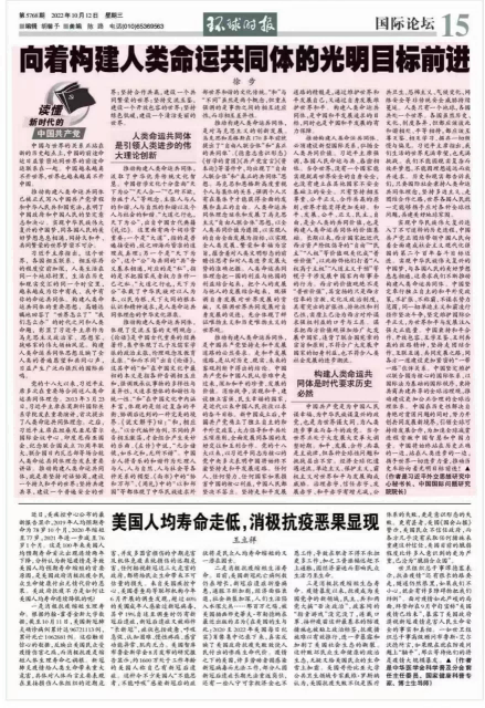 10月12日,习近平外交思想研究中心秘书长、中国国际问题研究院党委书记、院长徐步在《环球时报》发表长篇理论文章《向着构建人类命运共同体的光明目标前进》。全文转载如下。