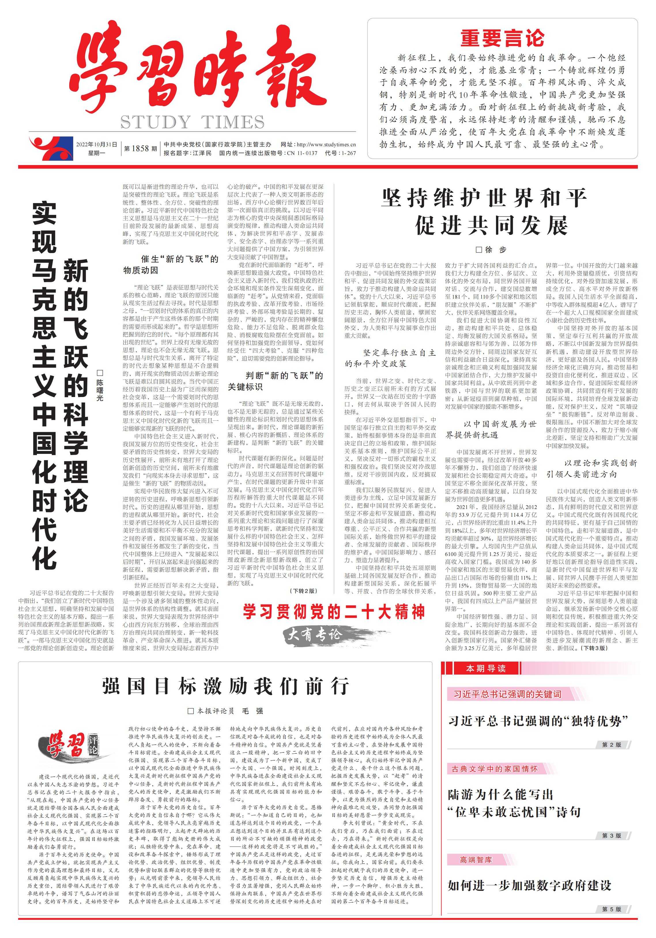 10月31日,《学习时报》头版刊发中国国际问题研究院党委书记、院长徐步理论文章《坚持维护世界和平促进共同发展》。全文转载如下。