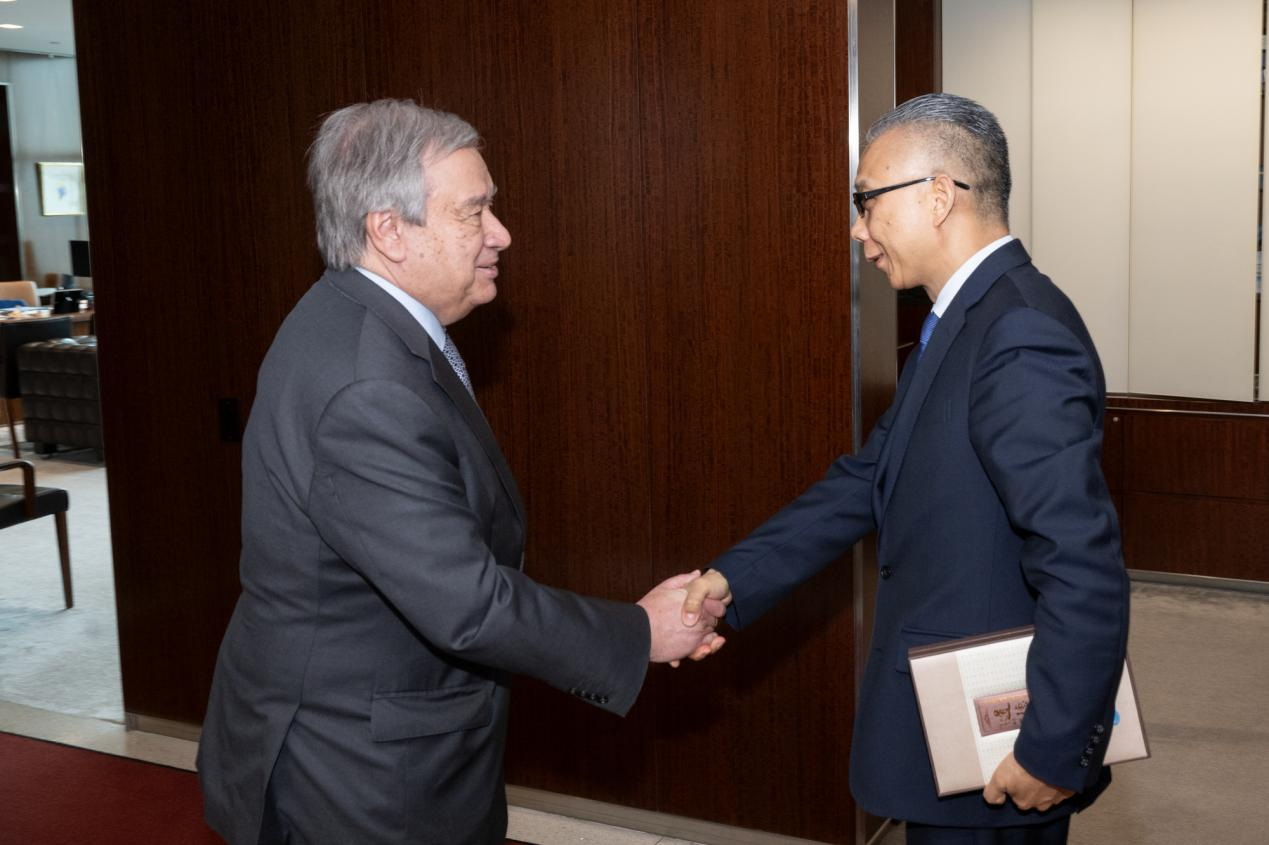 古特雷斯秘书长表示,第二次世界大战结束后形成的国际体系已不再能够反映当下现实,无法应对全球性挑战,难以为各国提供安全保障。由于错误认知和错误叙事的负面影响,全球地缘政治现实严重恶化,世界更加四分五裂。我们身处同一个世界,不能让国家间失去联系,不能让全球市场脱钩,必须推动改革国际多边机制,确保国际社会就全球公共产品开展合作。各国有不同历史、文化和制度,但多元化使世界变得丰富而非带来威胁,联合国将尽其所能弥合国家间的认知鸿沟,希望徐步院长继续参与联合国重要磋商,为解决当今及未来挑战、完善全球治理贡献智慧。