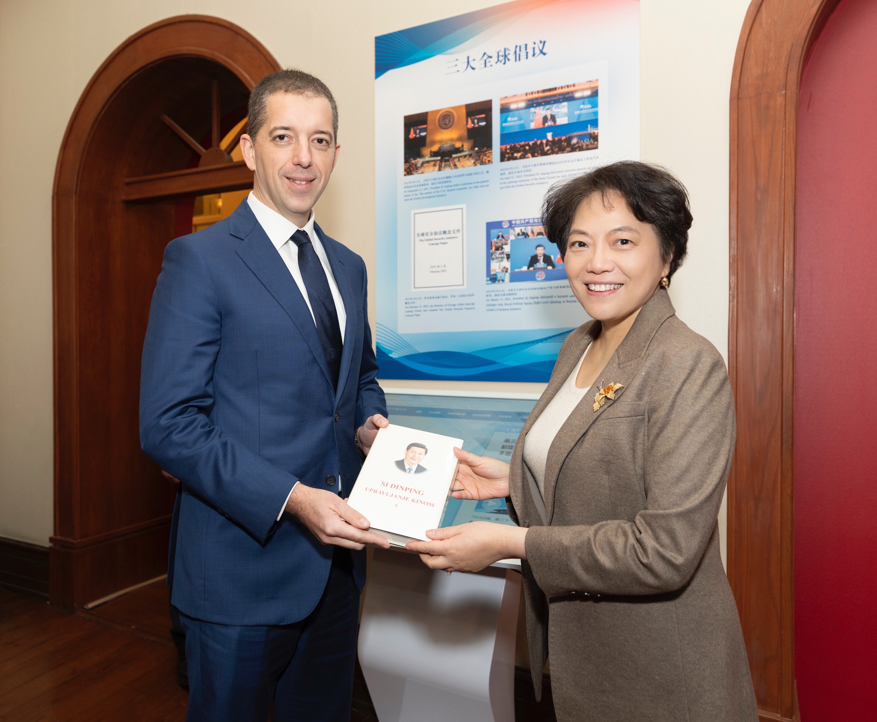 久里奇还参观了习近平外交思想研究中心陈列室,浏览了“习近平外交思想和新时代中国外交”专题网站,陈波向久里奇赠送《习近平谈治国理政》第一卷塞尔维亚文版。