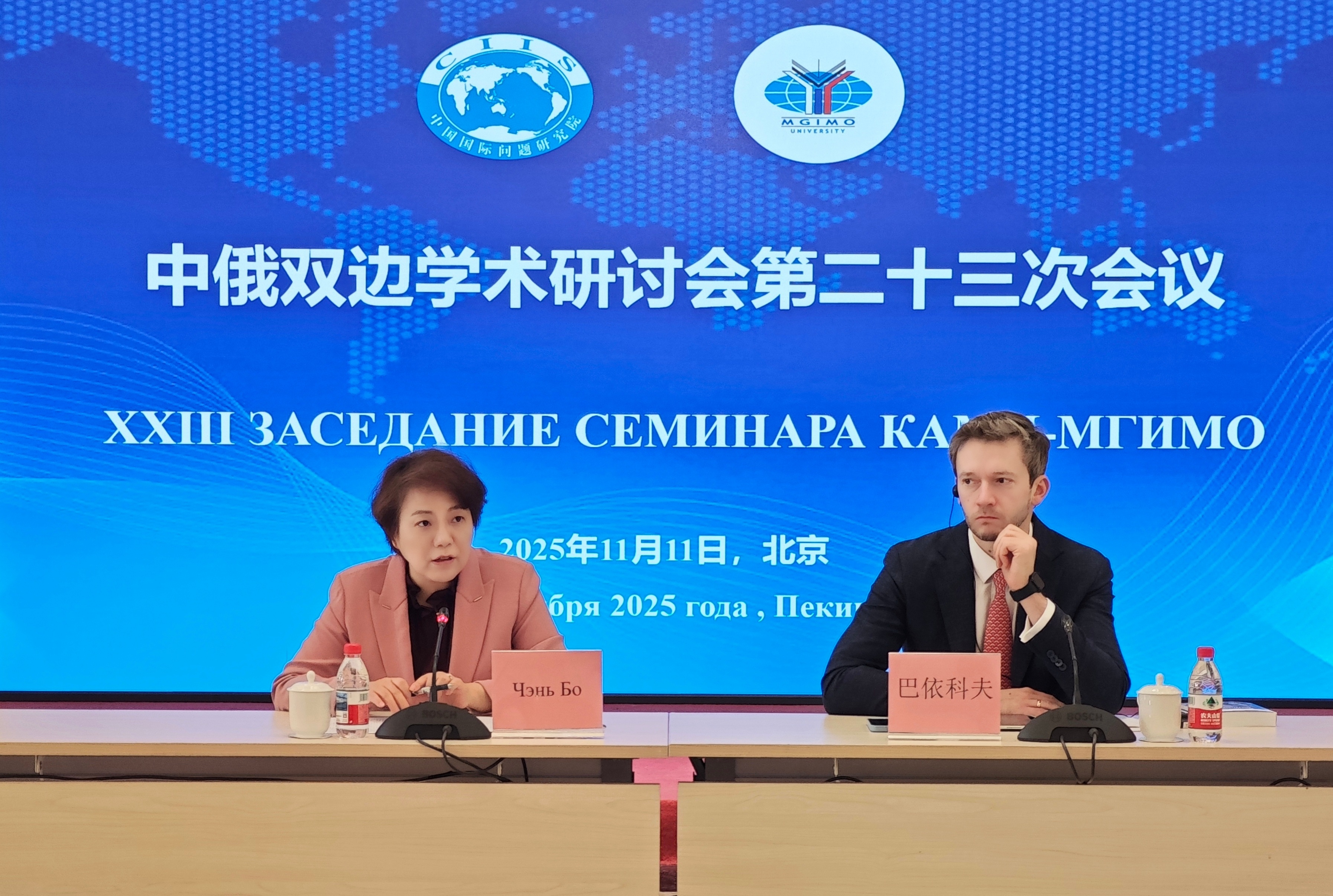 2025年 11 月 11 日,第二十三次中俄双边学术研讨会在中国国际问题研究院举行。陈波院长与莫斯科国际关系学院巴依科夫副校长分别致开幕辞。