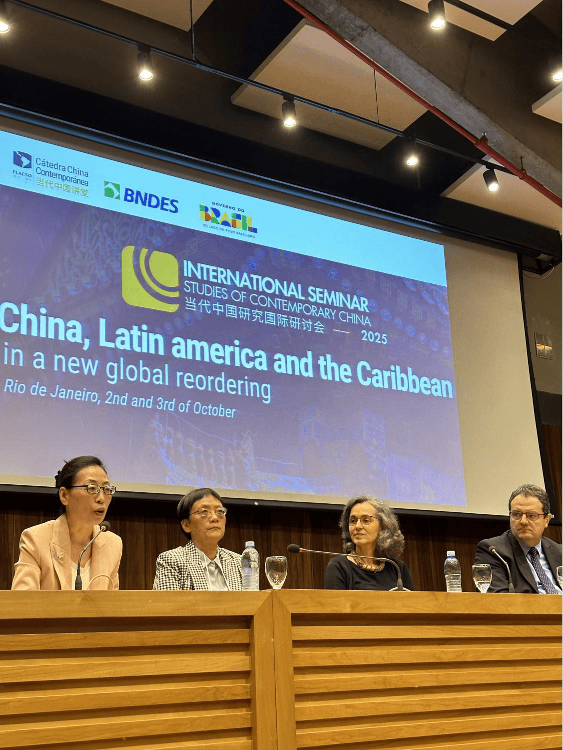 在巴西期间,代表团出席由拉美社科院和巴西国家经济社会发展银行联合主办的第二届当代中国研究国际研讨会。本届会议主题为“全球新秩序中的中国与拉美和加勒比地区”。拉美社科院秘书长莱莫斯、巴西国家经济社会发展银行主任巴尔博萨、中国驻巴西大使祝青桥分别致辞。任红岩副院长作大会发言,拉美所宋均营所长、章婕妤助理研究员在分论坛发言。来自中国、拉美和加勒比地区国家的100多位专家学者就数字技术、气候变化、地区一体化、人文交流等领域合作进行了深入探讨。