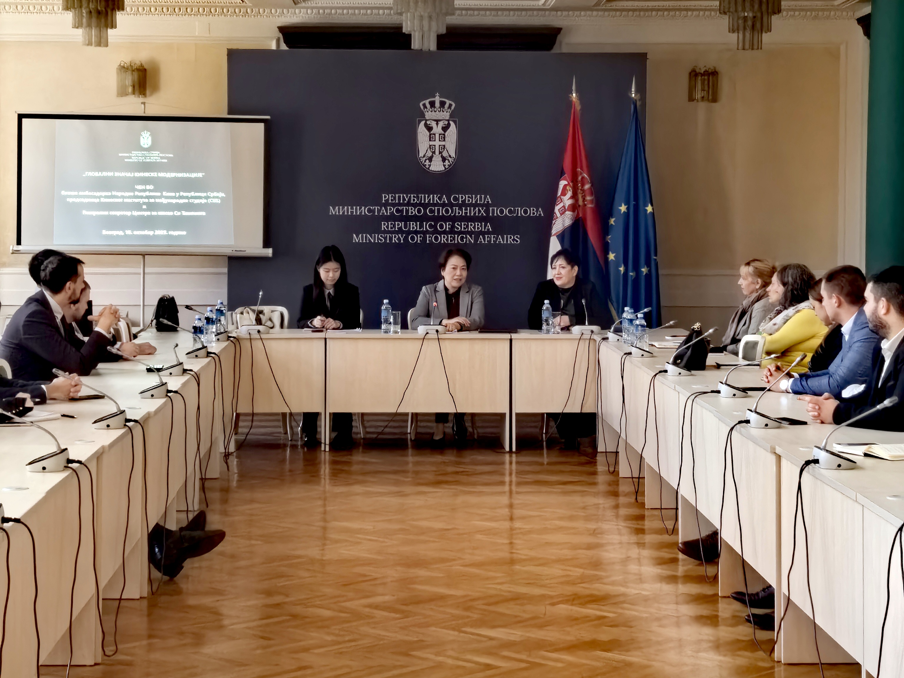 2025年10月13日至17日,中国国际问题研究院院长陈波率团赴塞尔维亚,参加我院同塞尔维亚国际政治与经济研究所联合举办的第五届“对话中国”国际研讨会。塞科学、技术发展和创新部部长助理科斯蒂奇、中国驻塞大使李明、陈波院长、习近平经济思想研究中心主任史育龙、塞国际政治与经济研究所所长乔尔杰维奇等出席开幕式并致辞。陈波和史育龙分别以“以中国式现代化推动世界现代化进程”和“稳定和可持续的中国经济发展”为题发表主旨演讲。习近平经济思想研究中心和我院等中方机构的专家学者参加多个分论坛发言和研讨。来自36个国家的140多名专家学者及塞政府代表、媒体、驻塞外交官等200余人与会。