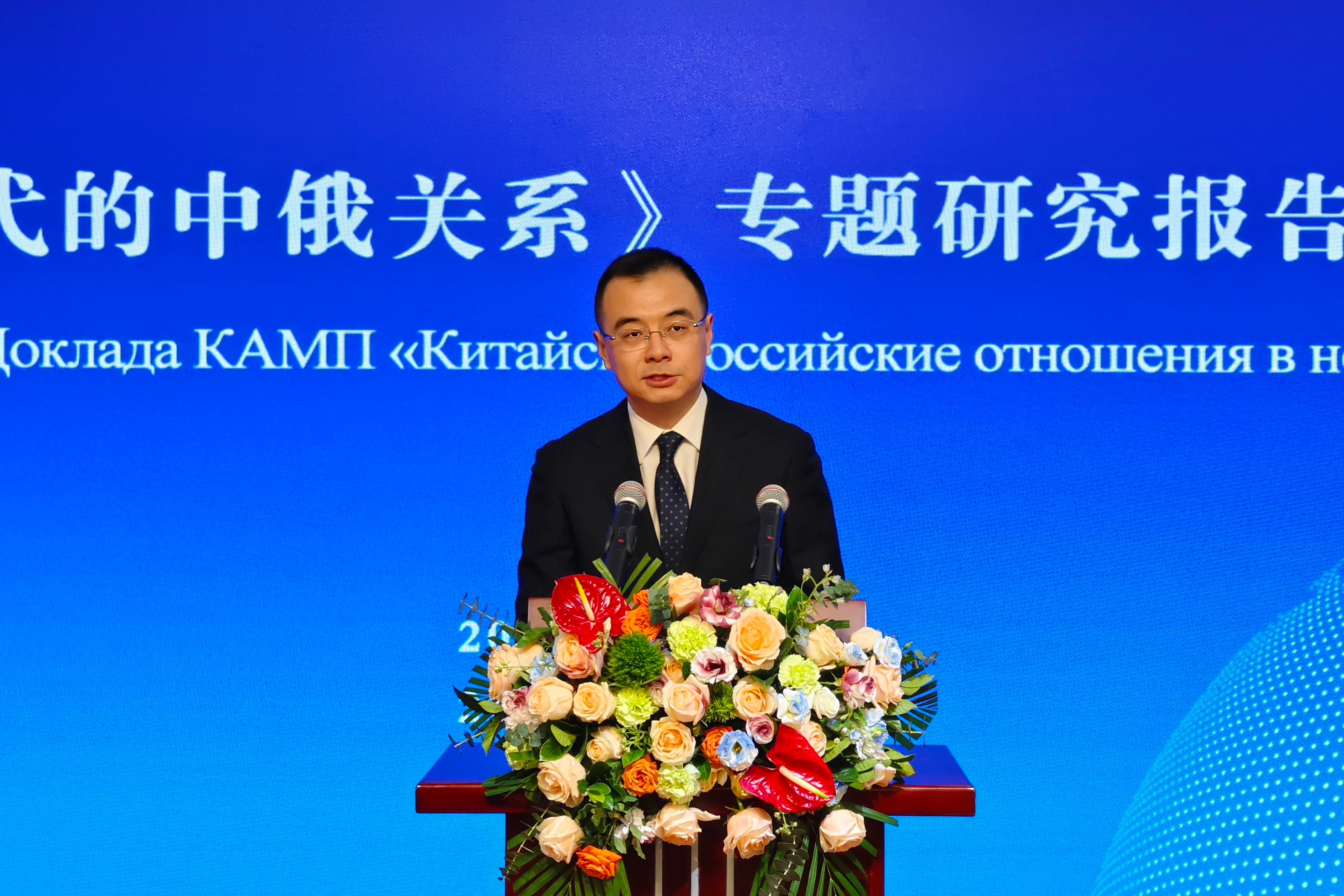刘彬在致辞中指出,四分之三个世纪以来,中俄关系历经风雨,始终保持向上、向前发展势头。进入新时代后,习近平主席和普京总统从历史的纵深和时代的高度牢牢把握中俄关系正确前进方向,为两国各领域合作注入新的不竭动力。今天发布的《新时代的中俄关系》研究报告系统梳理和总结新时代中俄合作取得的显著成绩,对中俄新时代全面战略协作伙伴关系持续深入发展提出有益的参考和建议。