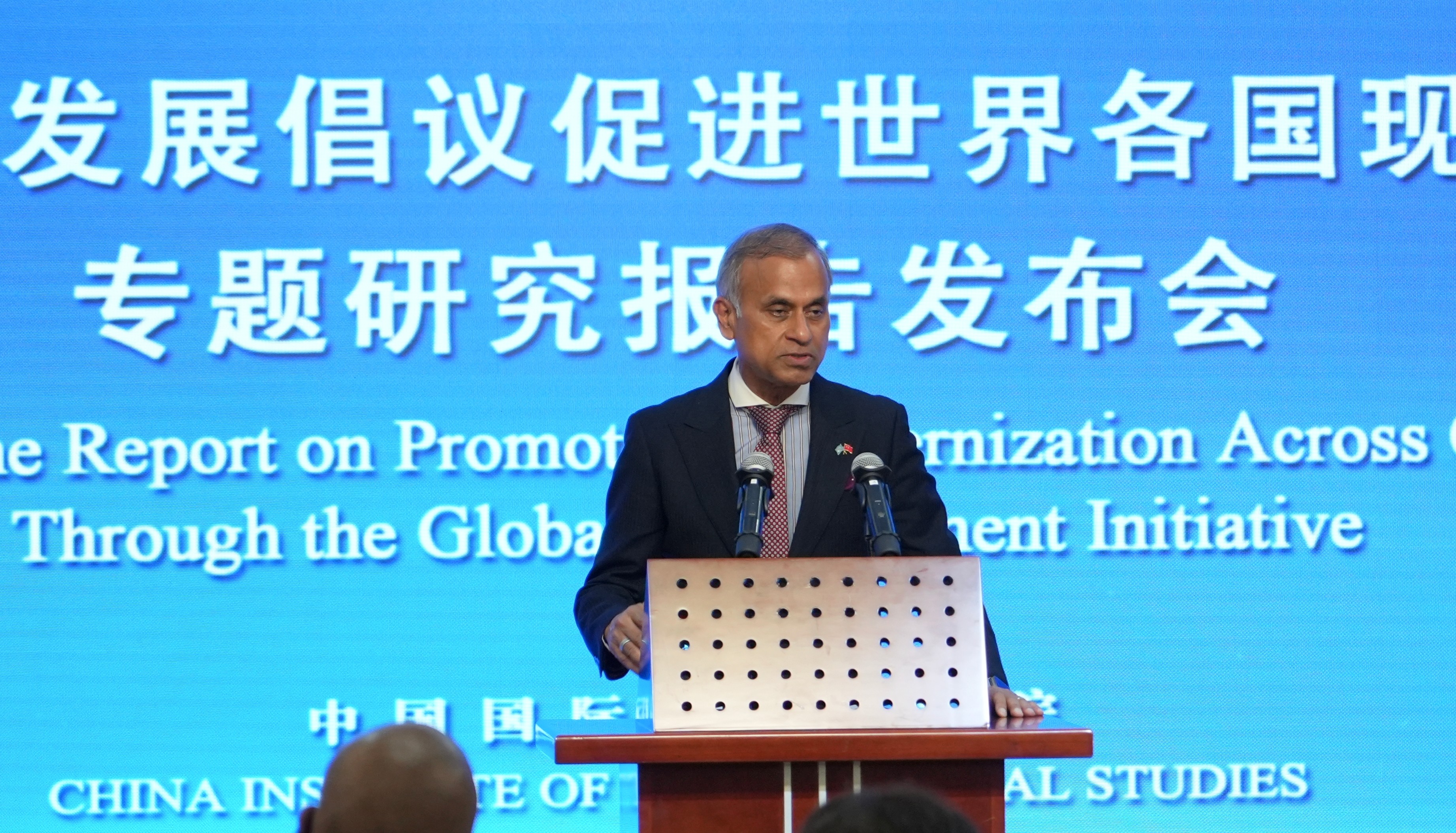 2025年6月9日,中国国际问题研究院举办《以全球发展倡议促进世界各国现代化》研究报告发布会。中国国际问题研究院院长陈波、巴巴多斯驻华大使亨利、格林纳达驻华大使马岩、东帝汶驻华大使罗瑞、玻利维亚驻华大使乌戈·西莱斯、委内瑞拉驻华大使雷米希奥·塞瓦略斯·伊查索、尼泊尔驻华大使克里希纳·奥利、联合国发展系统驻华协调员常启德、中国外文局副局长兼当代中国与世界研究院院长于运全、中央党校(国家行政学院)国际战略研究院院长吴志成、中国社会科学院国家全球战略智库副理事长王镭等出席发布会并作发言。