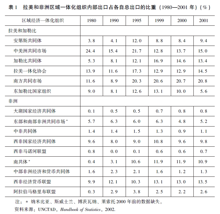 区域经济一体化大致有逐步进化的五种组织形式:自由贸易区、关税同盟、共同市场、经济联盟及完全的经济一体化。自20世纪60年代以来,拉美与非洲各自经历了60年的经济一体化进程,其一体化组织名称中不乏自由贸易、共同市场或关税同盟等字眼,但大多名不副实,尚无真正意义上的关税同盟或共同市场,实际上仍停留在自由贸易阶段。以南方共同市场为例,《亚松森条约》为南共市的形成规定了三个阶段:1991—1994年建成自由贸易区,1995年建成关税同盟,以便最终建立共同市场和共同的外部关税。尽管南共市成立初期发展较快,但附加条款的存在意味着完全意义的关税同盟无法实现。在非洲,东共体、南共体、西共体和东南非共同市场等次区域经济一体化组织也存在预定目标不断往后拖延的问题。