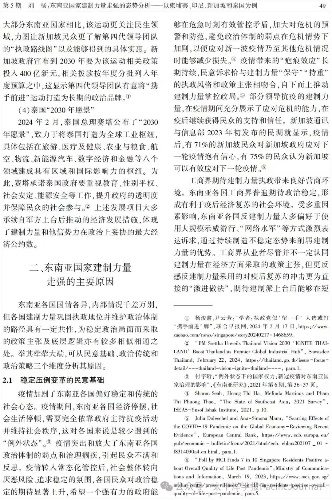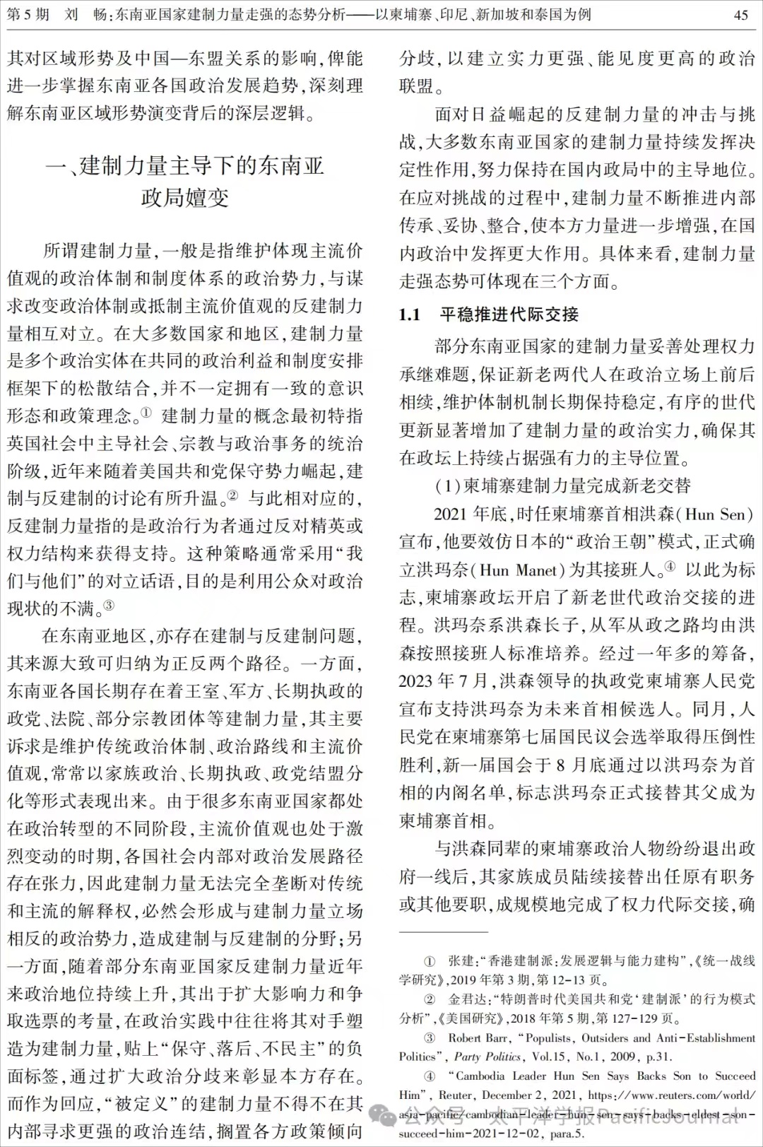 东南亚国家建制力量走强的态势分析——以柬埔寨、印尼、新加坡和泰国为例
