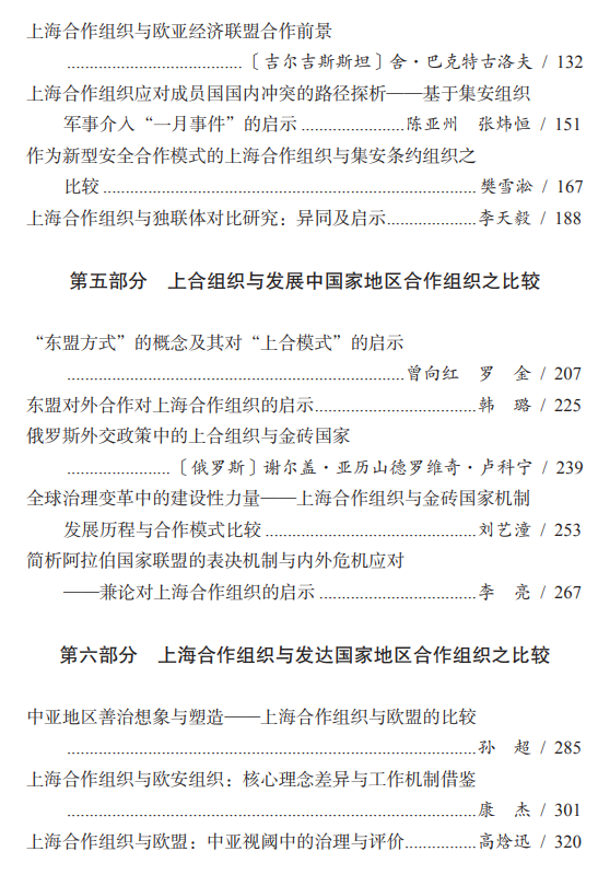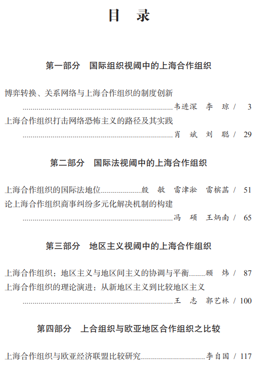 本书共分七个章节,内容包括第一部分,国际组织视阈中的上海合作组织;第二部分,国际法视阈中的上海合作组织;第三部分,地区主义视阈中的上海合作组织;第四部分,上合组织与欧亚地区合作组织之比较;第五部分,上合组织与发展中国家地区合作组织之比较;第六部分,上海合作组织与发达国家地区合作组织之比较;第七部分,上合组织的发展方向与前景。该书体现了学理性、历史性、现实性的有机统一,基本涵盖了世界主要国际组织,既有专业学术性,又有社科普及性,同时还具有政策性特点。